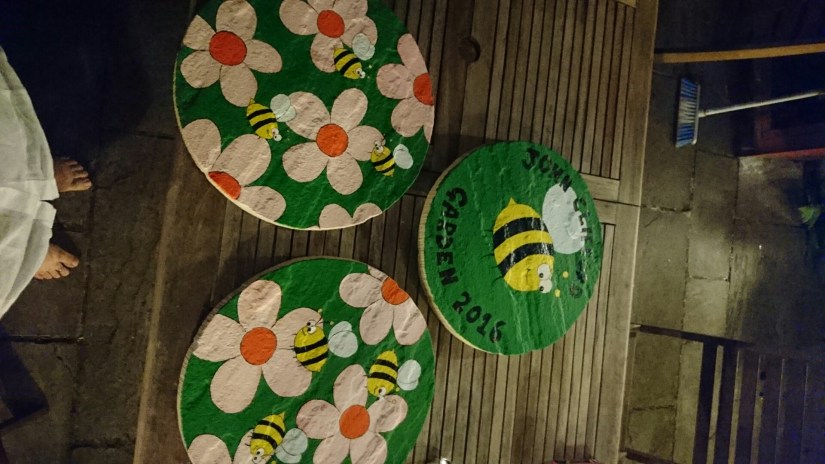 Roughly 13 hours later I was adding the finishing touches to three stepping stones for the very wonderful John Clifford Primary school.
