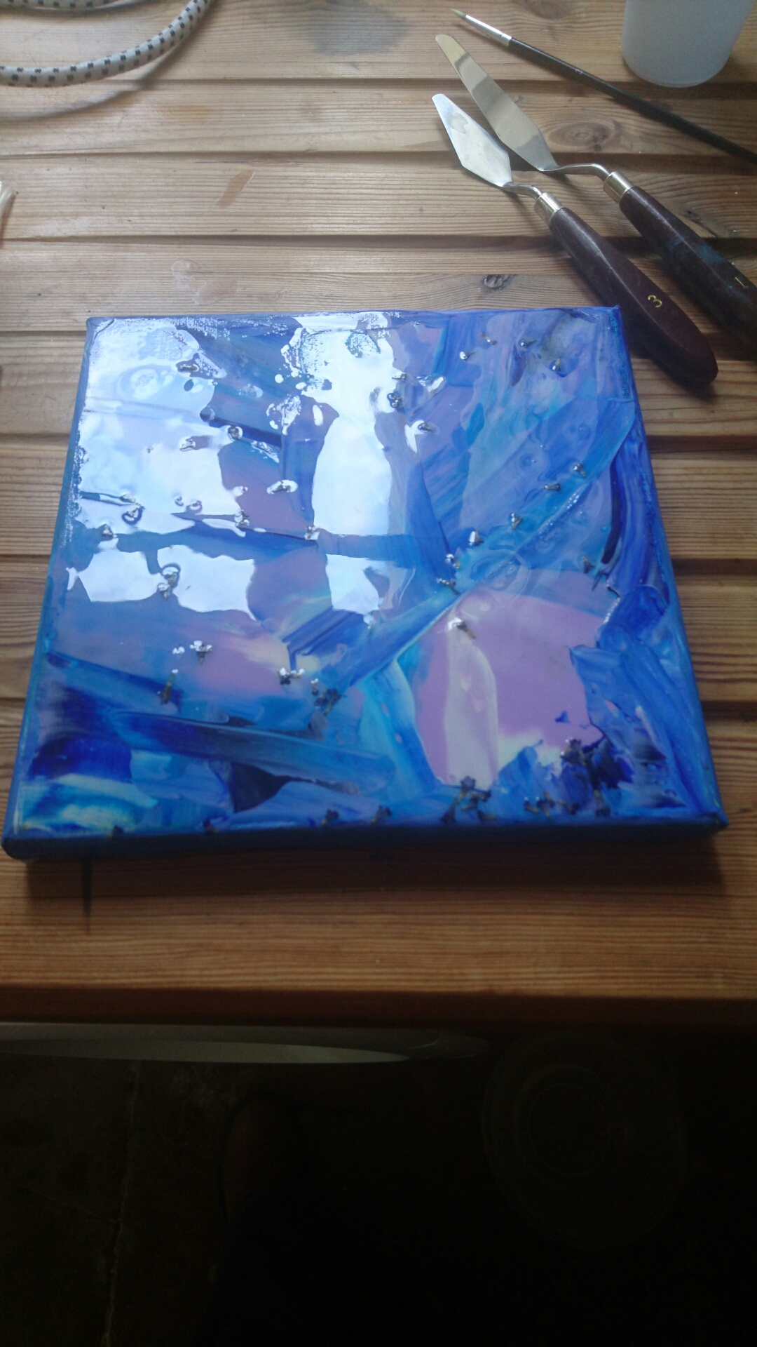 So a few days ago I mentioned having a go at using resin in my art. Inspired by the lavender smells wafting through my window I painted an abstract piece using acrylic paint.